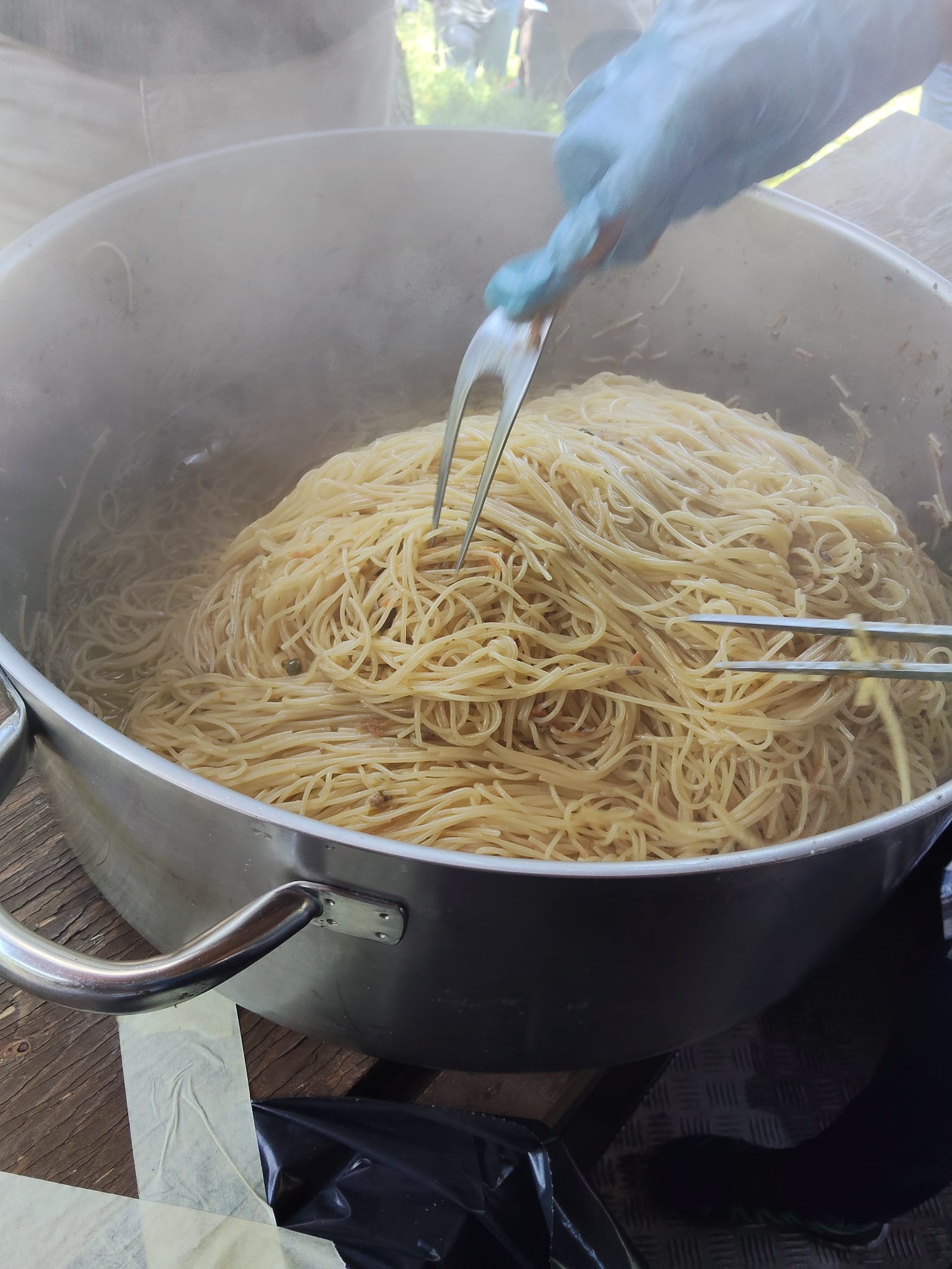 And as every year, the classics are never missing: spaghetti with sardines, eggs, sandwiches, the colomba… and above all, plenty of cheerfulness.