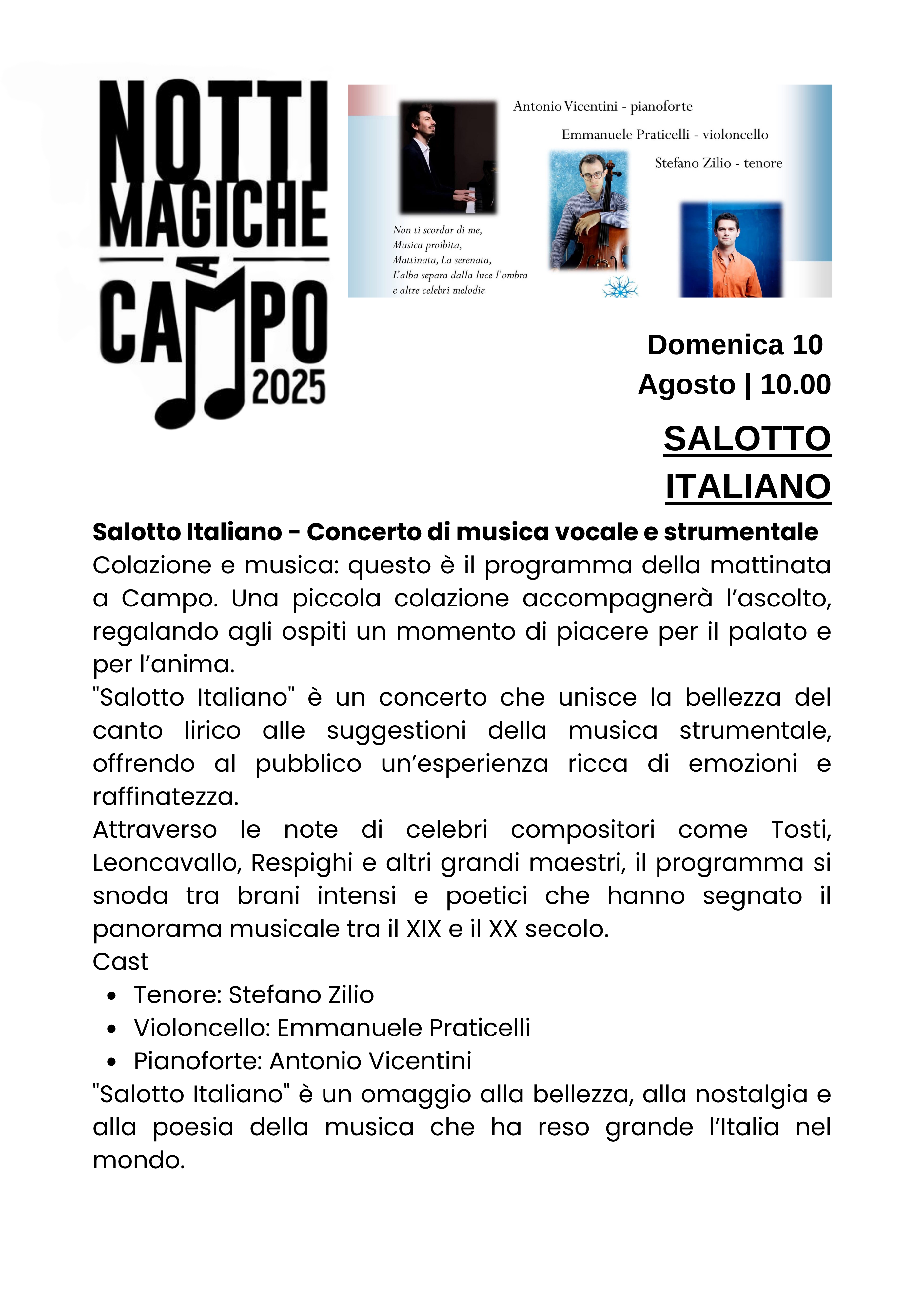 Sabato 9 agosto 21.30 - 25€ - SALOTTO ITALIANO