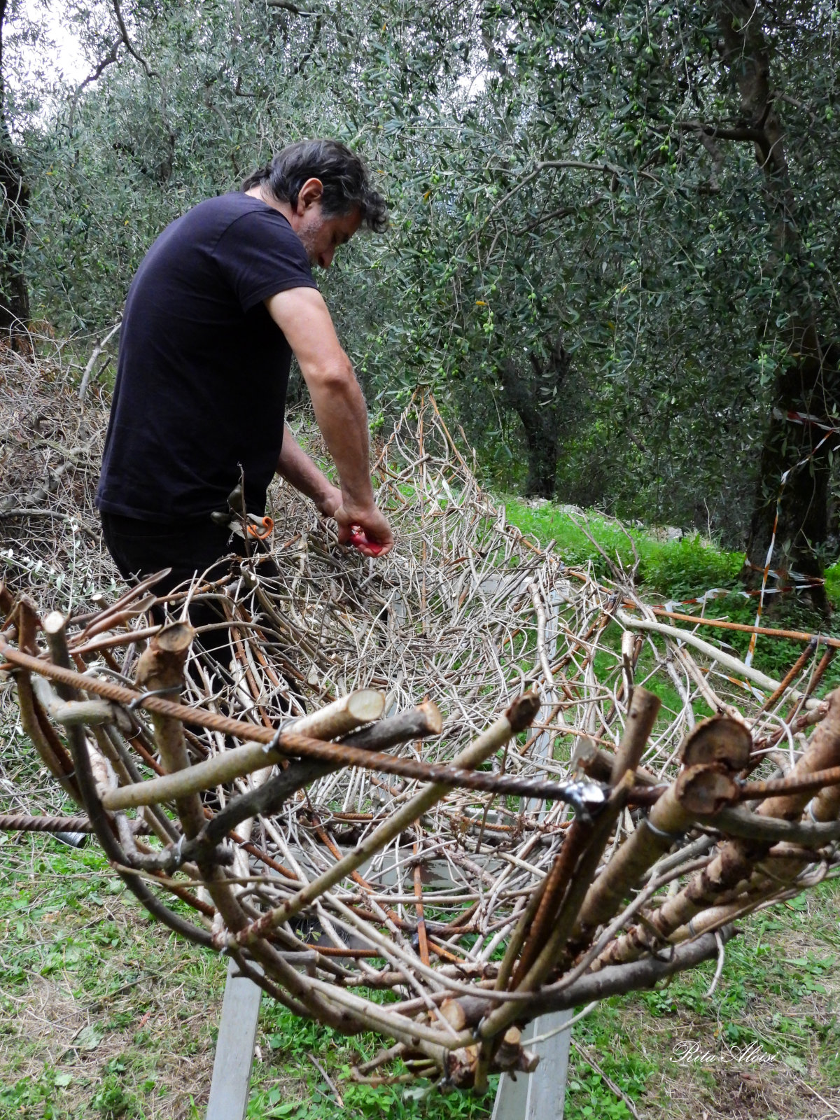 "This second encounter with Land Art in Campo di Brenzone sul Garda confirms the desire to continue this project, which is linked to contemporary art and pays attention to the territory, the use of natural materials, and its landscape ethics. The artist Oscar Dominquez was immediately inspired and involved by the place, creating a symbol and a sign that can simultaneously represent plant nature and human creativity. Dominguez's leaves/boats are therefore the synthesis of this sharing and emergence into a single, large system in which humans are inserted and in which they live."