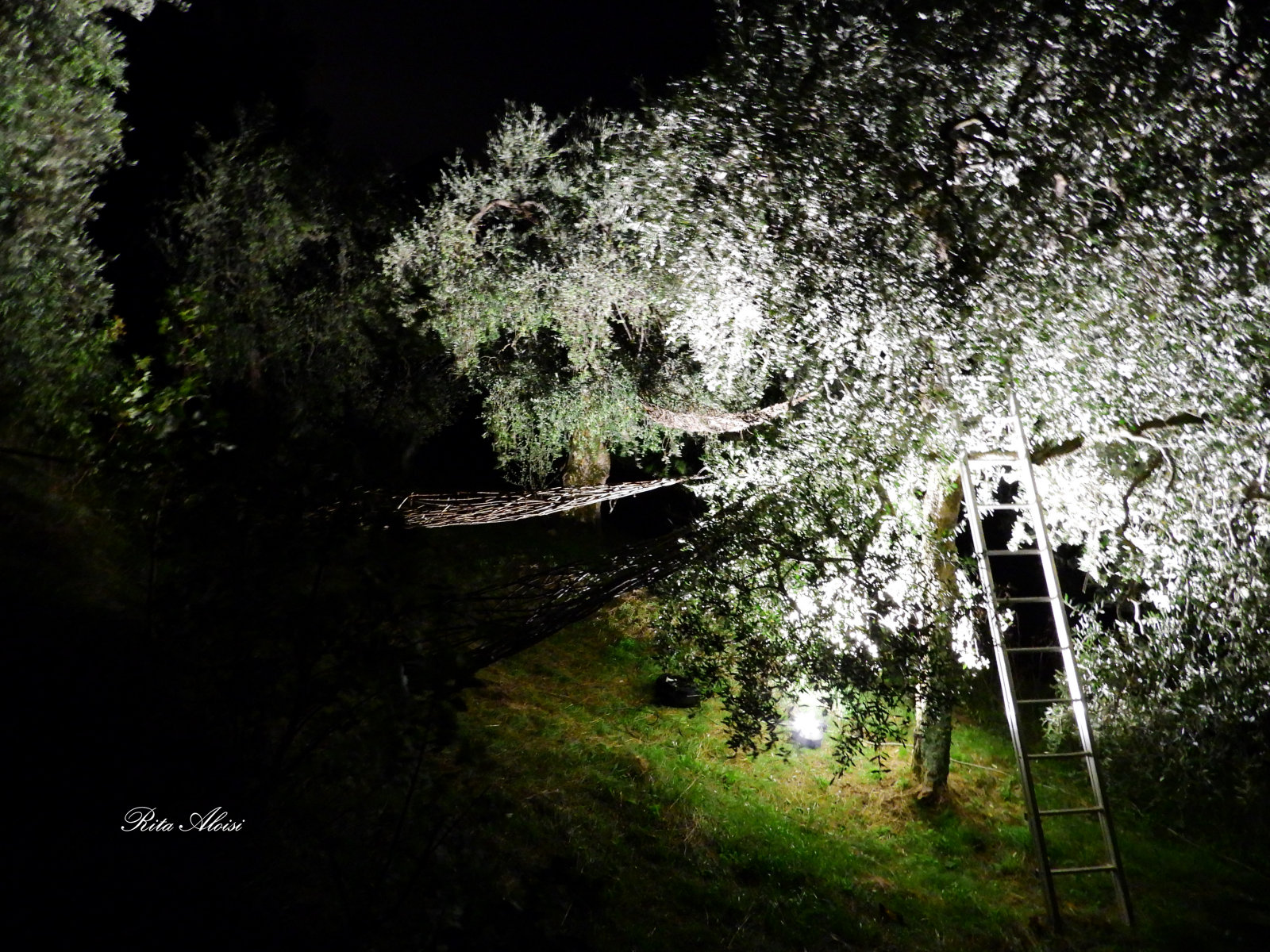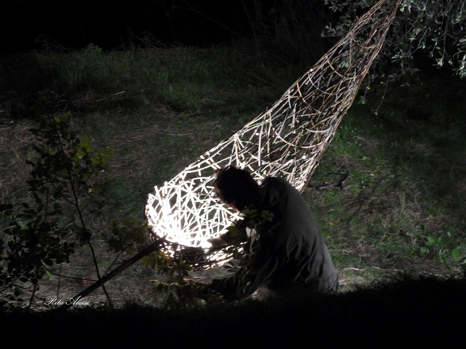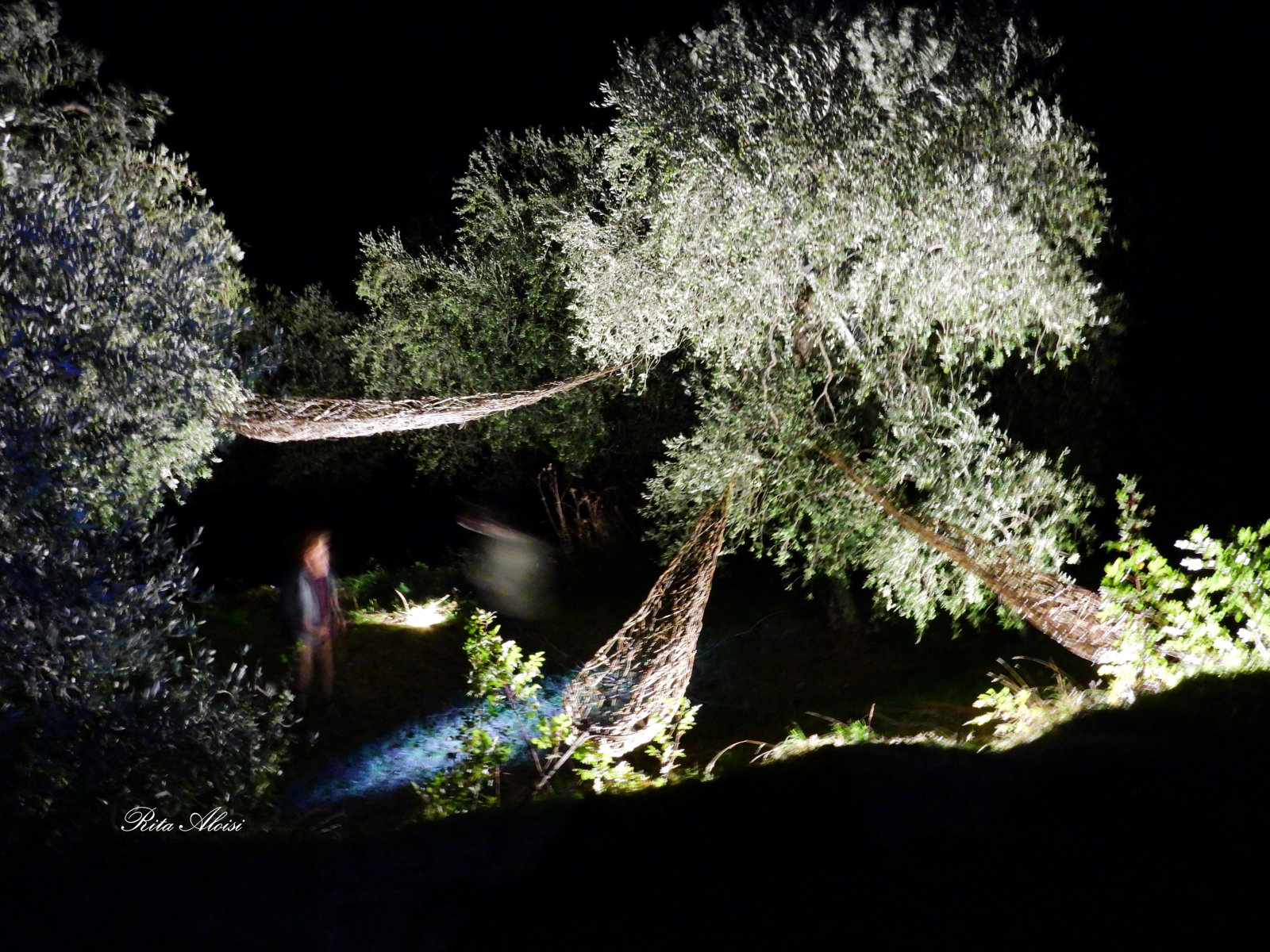To represent the trait d'union, an olive leaf that transforms into a boat that floats and glides among the ancient trees. The audience is invited to view the work from different angles, gaining new perspectives and projecting the object into different landscapes—both mountains and lakes. The work floats, raised from the ground, to illustrate the dream, the dreamlike journey of a thought that hovers above us, changing according to human will. Martin Heidegger said, "Man is thrown into the world, and in this suspended state he seeks the meaning of his being." This philosophy is transformed into a work for the artist, who wishes to materialize a thought by giving it the simplest form that expresses the nature of the place.