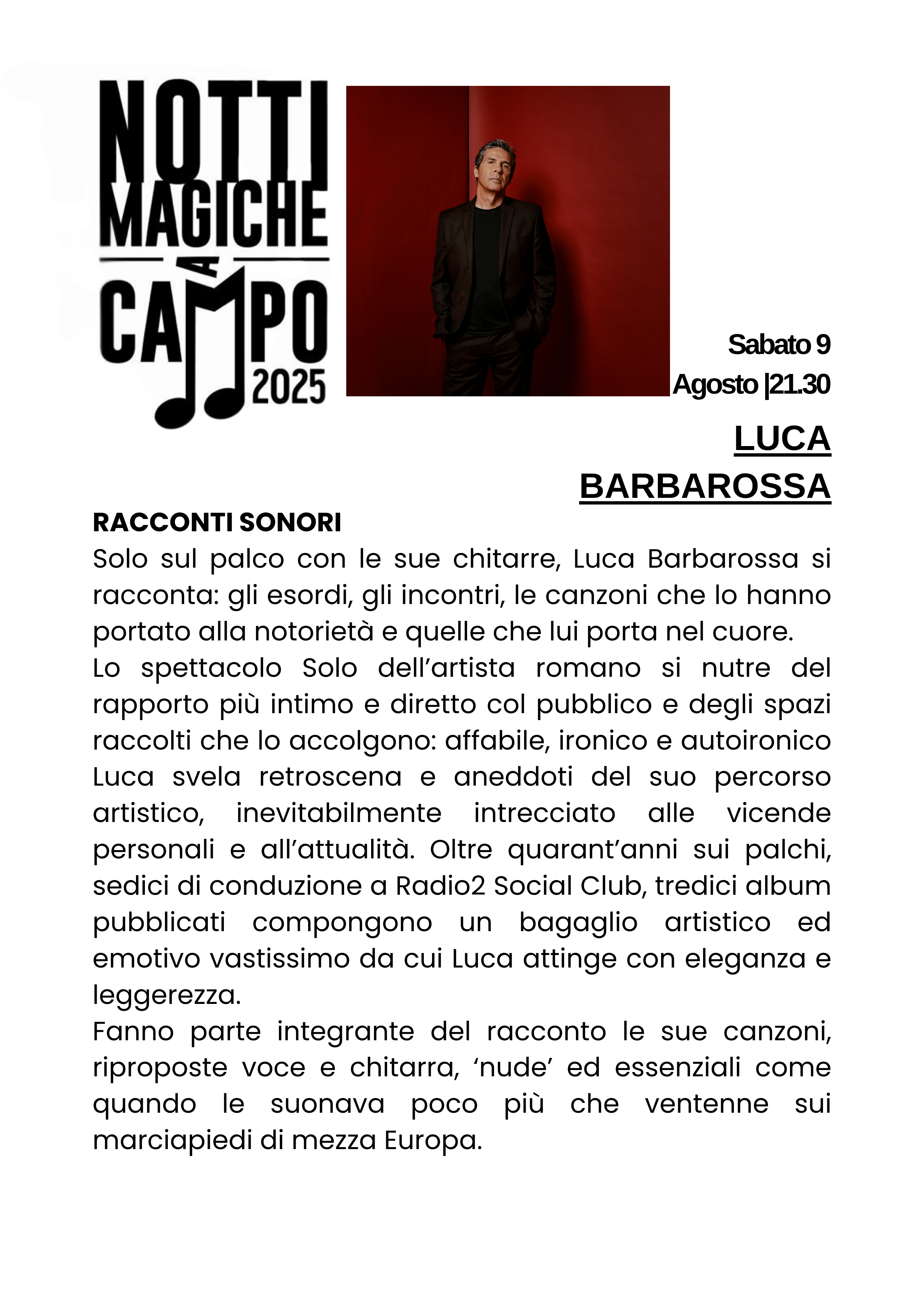 Venerdì 8 agosto 21.30 - 20 - LUCA BARBAROSSA