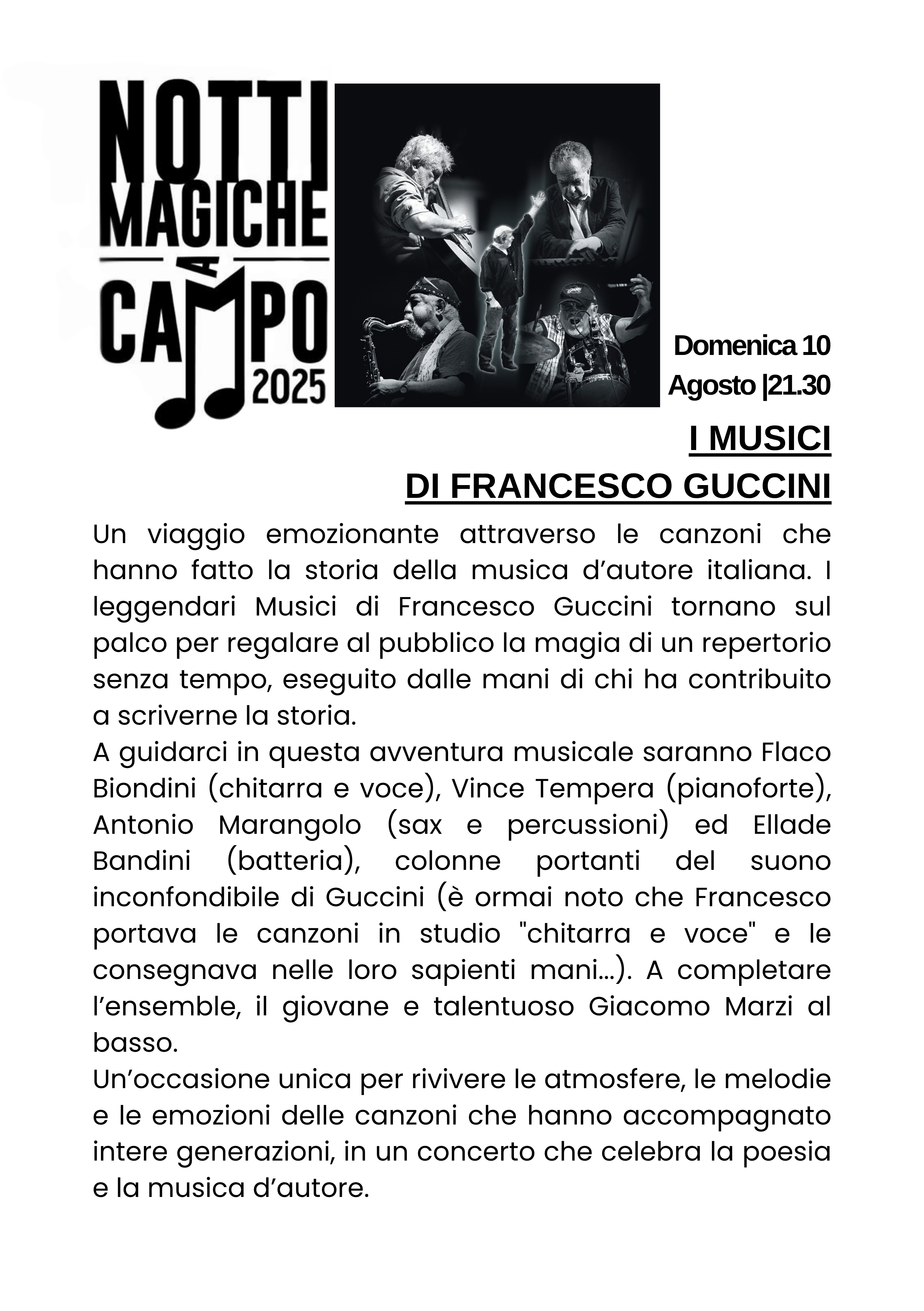 Domenica 10 agosto 10.00 - 15€ - I MUSICI DI FRANCESCO GUCCINI